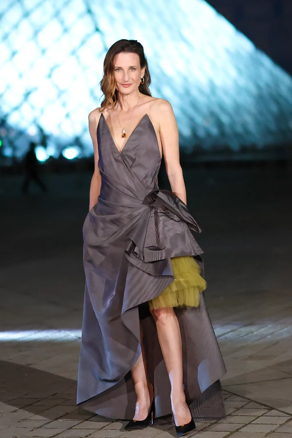 Camille Cottin se ha destacado por un vestido de seda gris de Dior Pre-Otoño 2026. Las joyas de Tiffany & Co. complementaron su look.