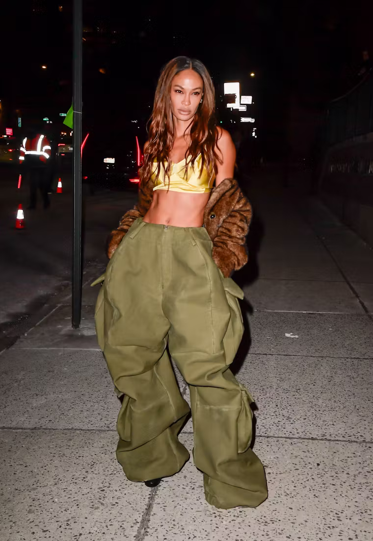 No hace mucho tiempo, los pantalones cargo, con todos sus bolsillos adicionales y proporciones holgadas, estaban firmemente en la columna de “NO” de la moda. Pero la silueta utilitaria, que alguna vez fue una reliquia de las obras de construcción, ha sido recuperada constantemente por la moda en los últimos meses. ¿Su última exponente? Joan Smalls.