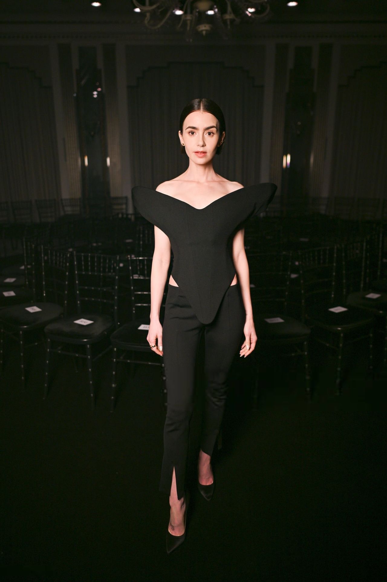En resumen, Lily Collins dio una lección en el front row con un estilismo que equilibra maestría y audacia. Este atuendo no es para nada tímido. Es elegante, un poco peculiar, y por eso funciona para un desfile de moda.