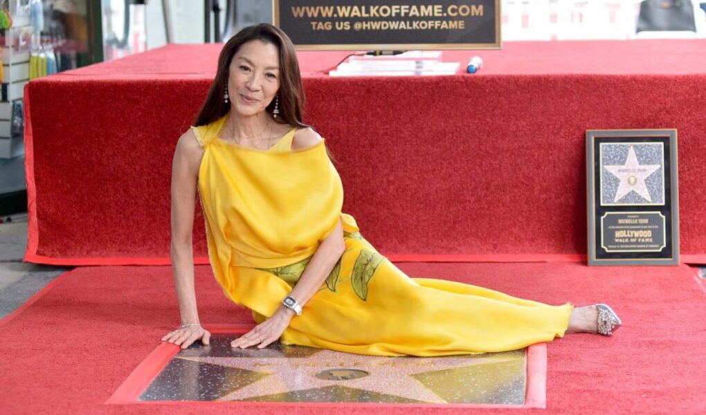 MICHELLE YEOH BRILLA DE AMARILLO GIRASOL AL RECIBIR SU ESTRELLA DE HOLLYWOOD