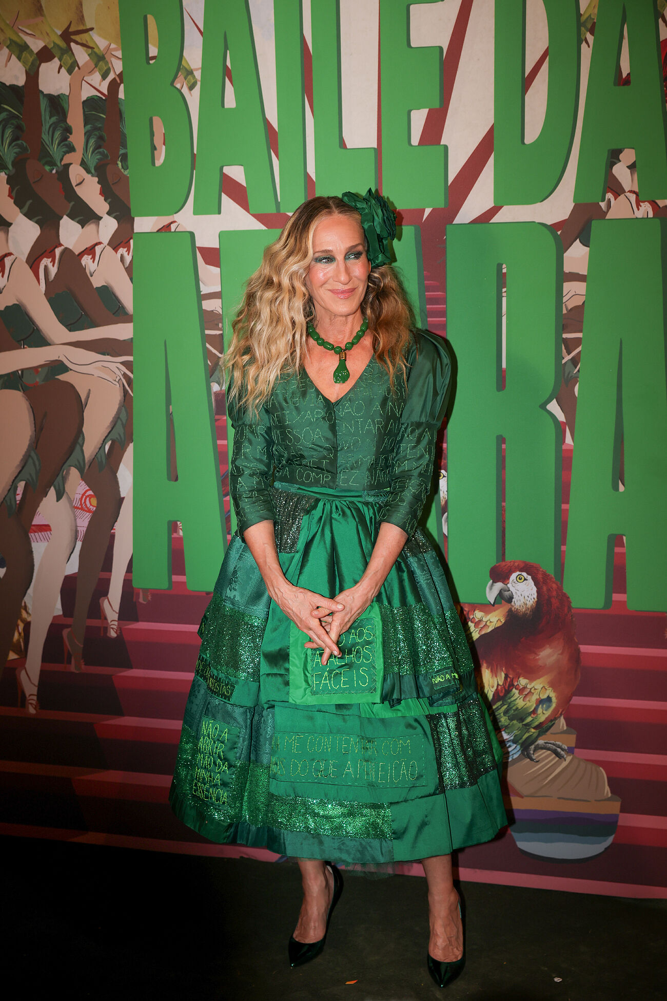 En el exclusivo Baile da Arara, una de las fiestas más codiciadas del calendario carnavalesco en Santa Teresa, Parker apareció con un vestido largo verde esmeralda que combinó dramatismo, identidad y guiños culturales.